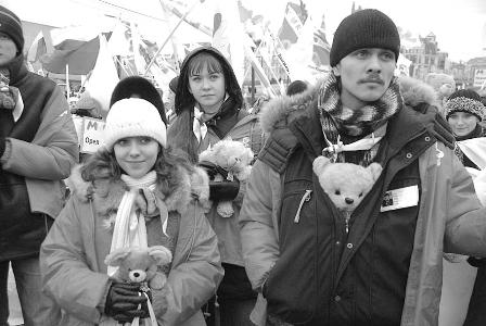 На массовом митинге 30 тыс. «наших» поздравили президента с победой на думских выборах. И прямо на Васильевском спуске, чтобы главе государства «из окна было видно», презентовали 10 своих проектов, которые помогут реализовать «План Путина».