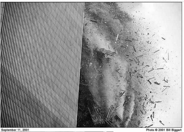 Близнецы были сконструированы так, чтобы выдержать столкновение с «Боингом- 707». По массе, размерам и скорости этот самолет сходен с «Боингами-767», которые врезались в небоскребы ВТЦ. И оба рухнули, разрушились полностью, превратившись в кучи мусора и тучи пыли - даже без остатков вертикальных стальных колонн. Они «сложились».