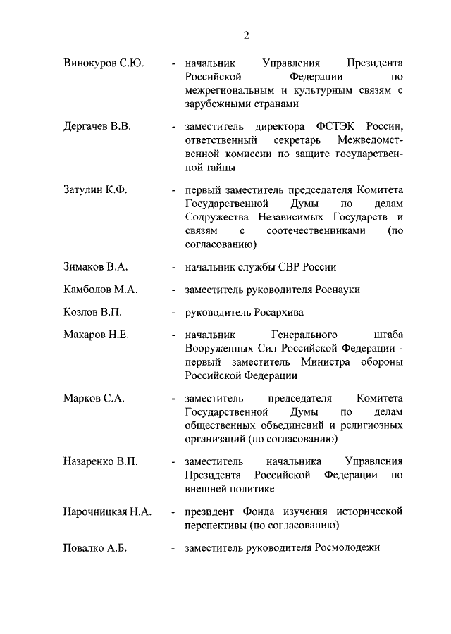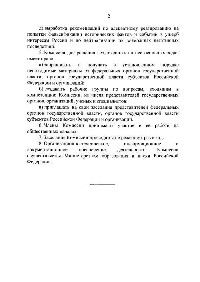 «О Комиссии при Президенте Российской Федерации по противодействию попыткам фальсификации истории в ущерб интересам России»